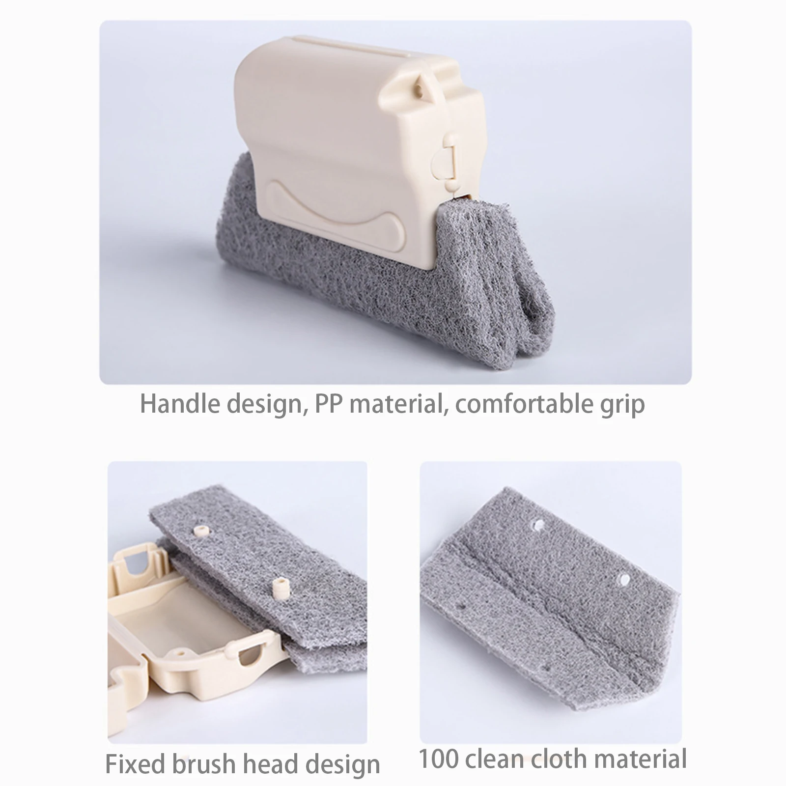 Особенности:1. Идеальный размер обеспечивает удобный захват, который позволяет держать руки в чистоте и легко протирать. Нескользящая ручка идеально подходит для ваших рук.2. Тонкая конструкция головки щетки больше не делает его трудным для очистки глубоких канавок. Эта Чистящая Щетка облегчает очистку любых щелей, уголков, узких пространств или щелей в комнате.3. Многофункциональная Чистящая Щетка. Идеально подходит для легкой и быстрой очистки оконных прорезей, дверных направляющих, углов и плинтусов, угловых прорезей для ящиков и раздвижных дверей.4. Материал: ABS ручка и ткань, съемные и моющиеся. Хорошая дезактивационная способность.Параметры:Материал: полипропиленЦвет: серый, слоновая кость, синийКомплектация (опционально)A1-3x щеткаA2-3x щетка + 2xClothA3-10xCloth
