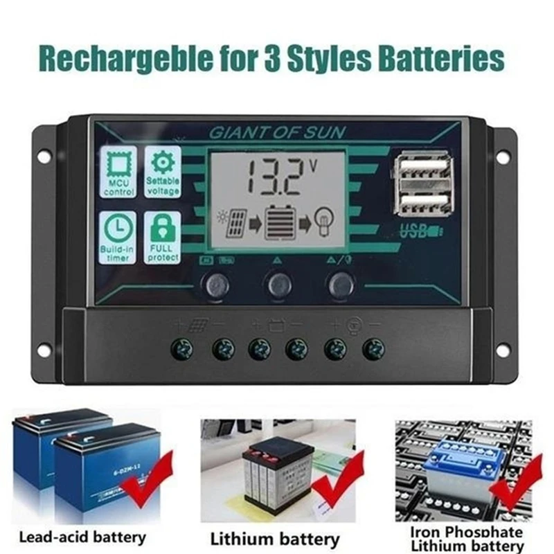Контроллер зарядного устройства солнечной батареи, с ЖК-дисплеем, двойным USB-портом, 10203060100 А, MPPT, 1224 в