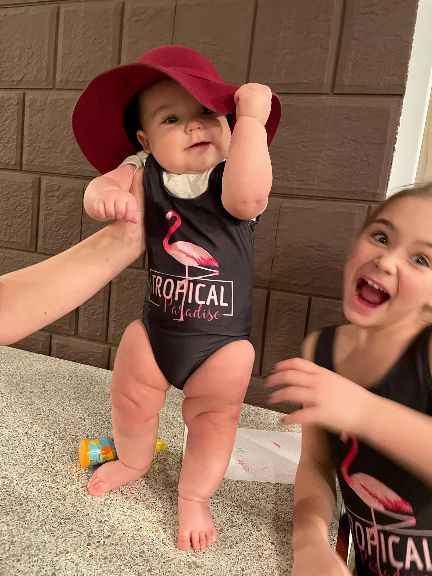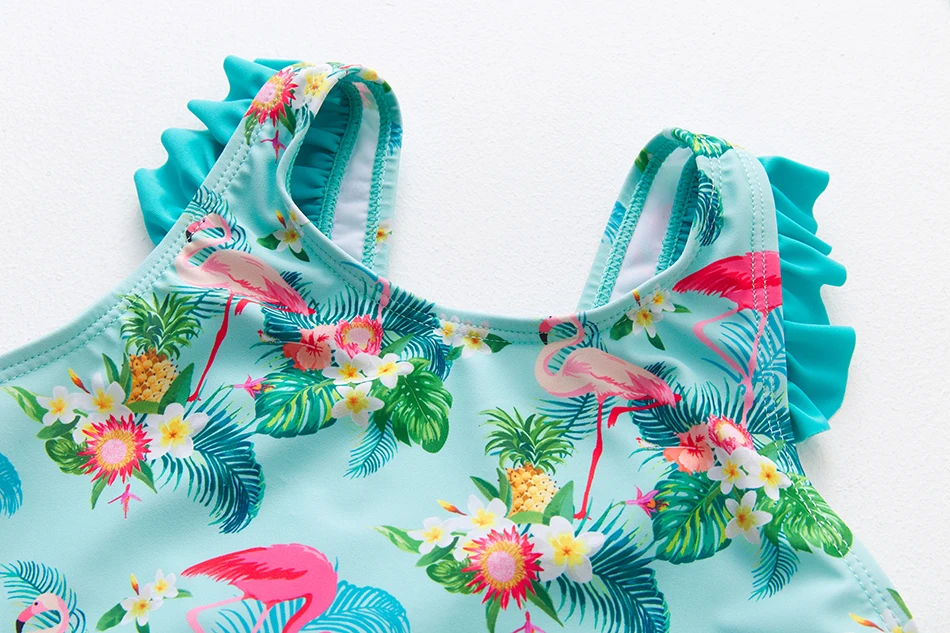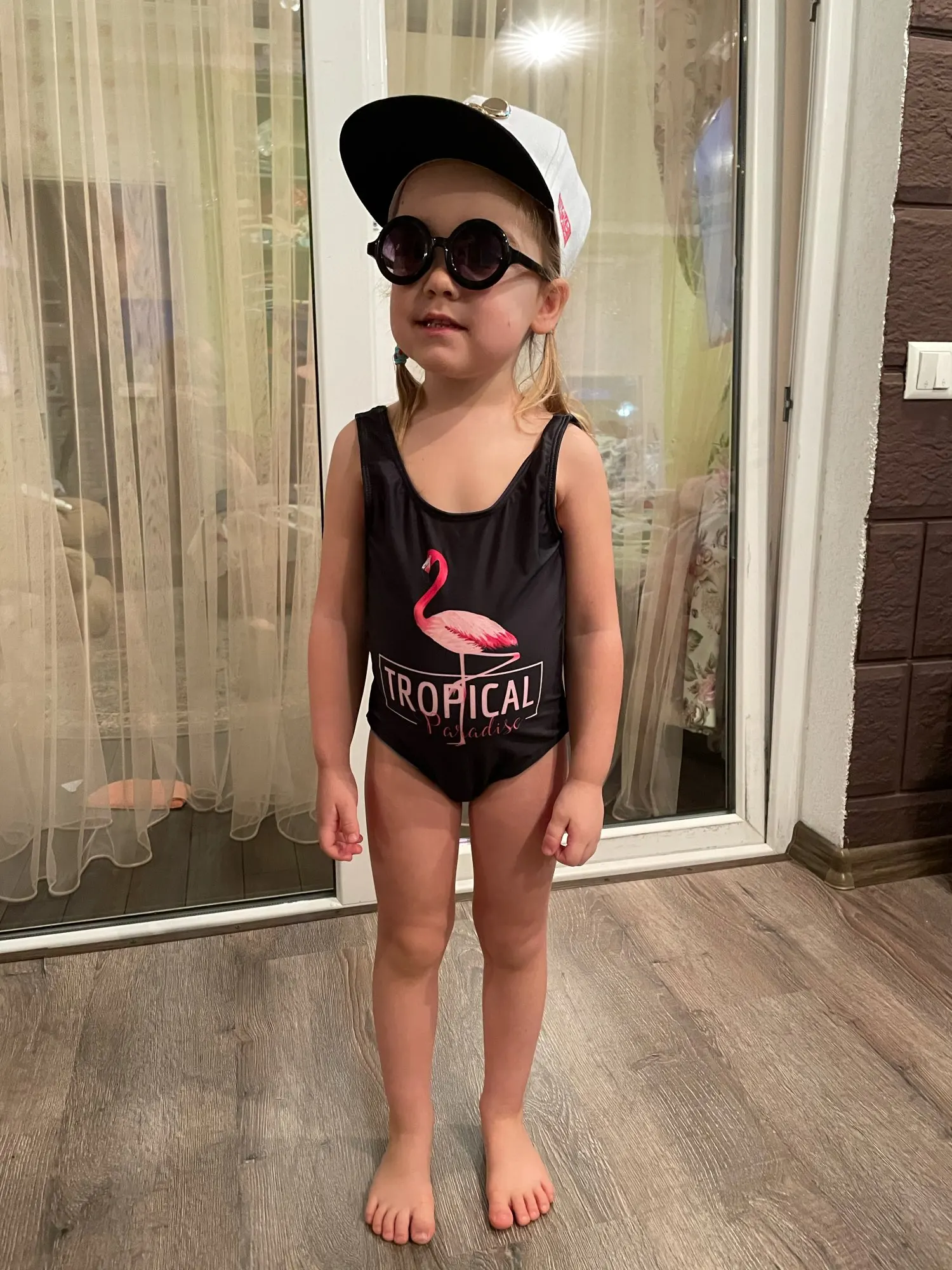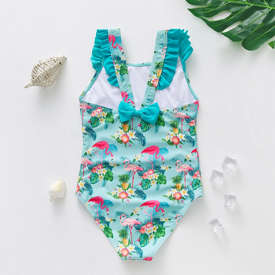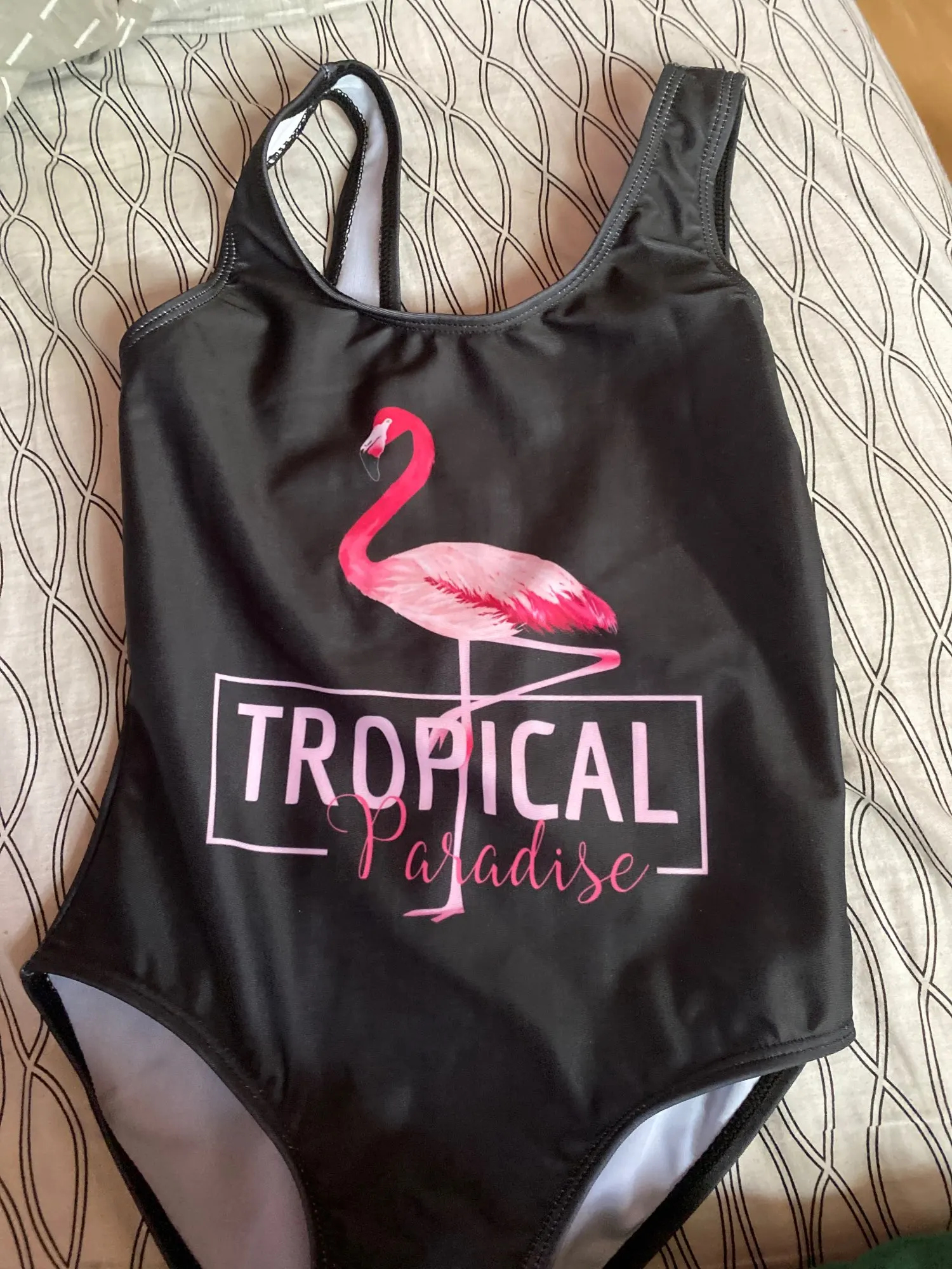 Купальники для девочек, черные, слитные, с принтом фламинго