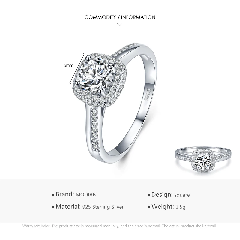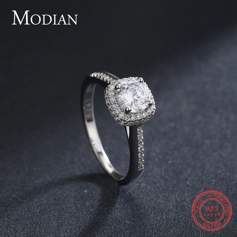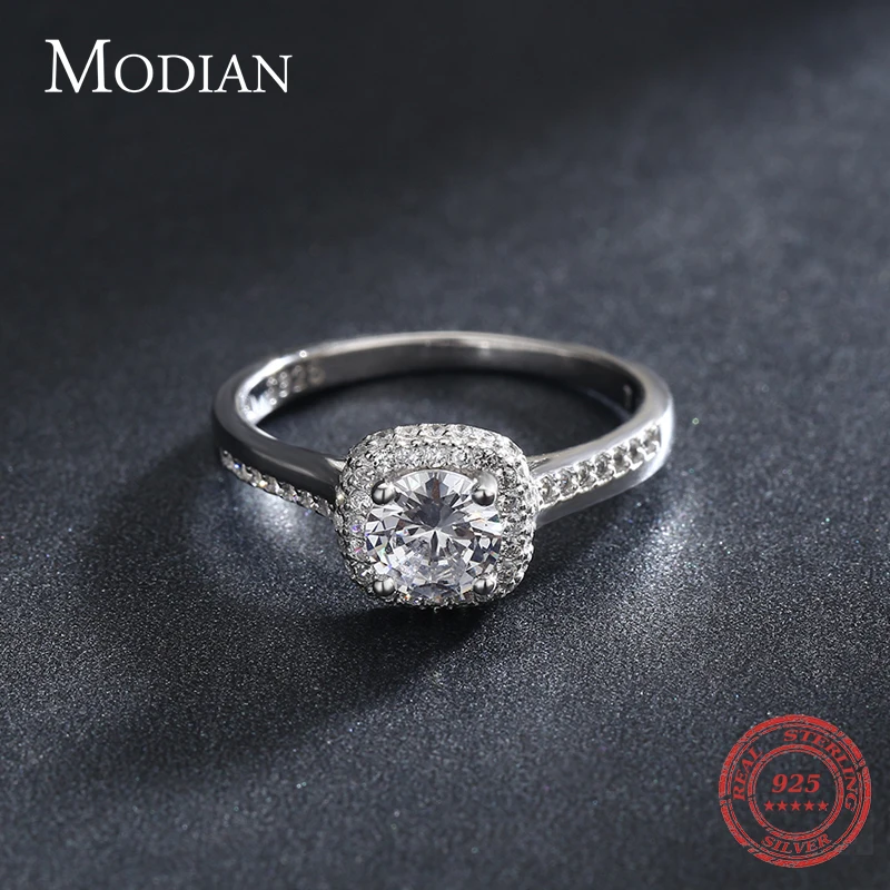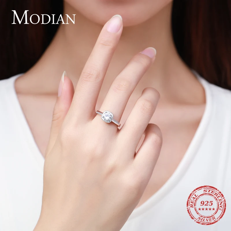 Женские круглые обручальные кольца Modian из серебра 925 пробы с прозрачным кубическим цирконием, свадебное обещание, ювелирные изделия в подарок