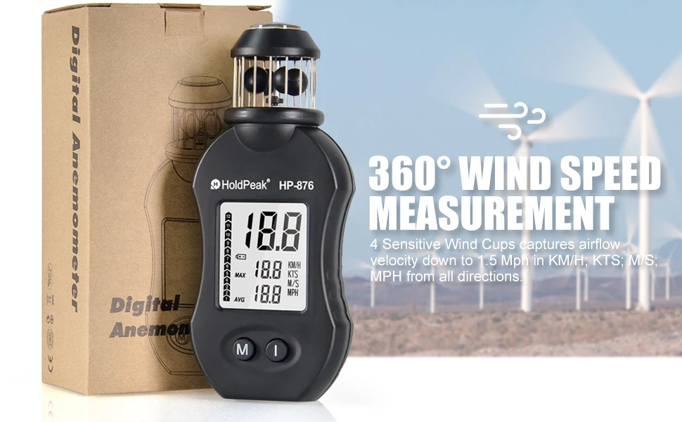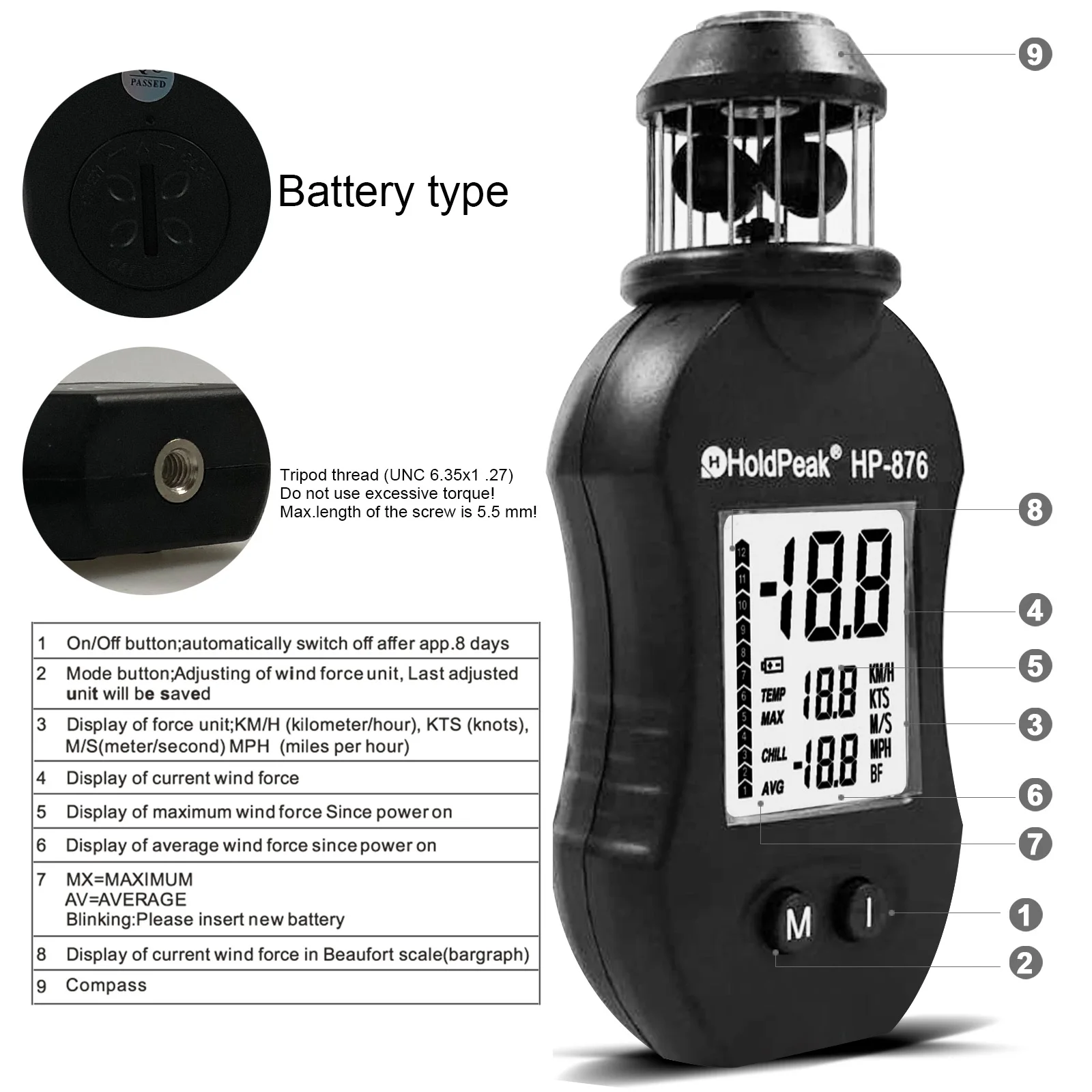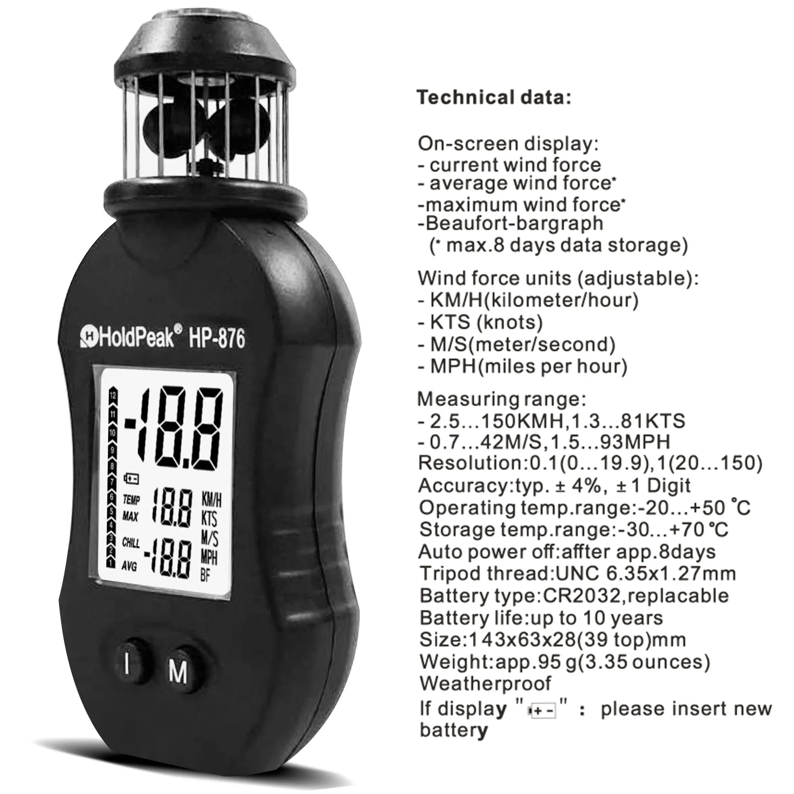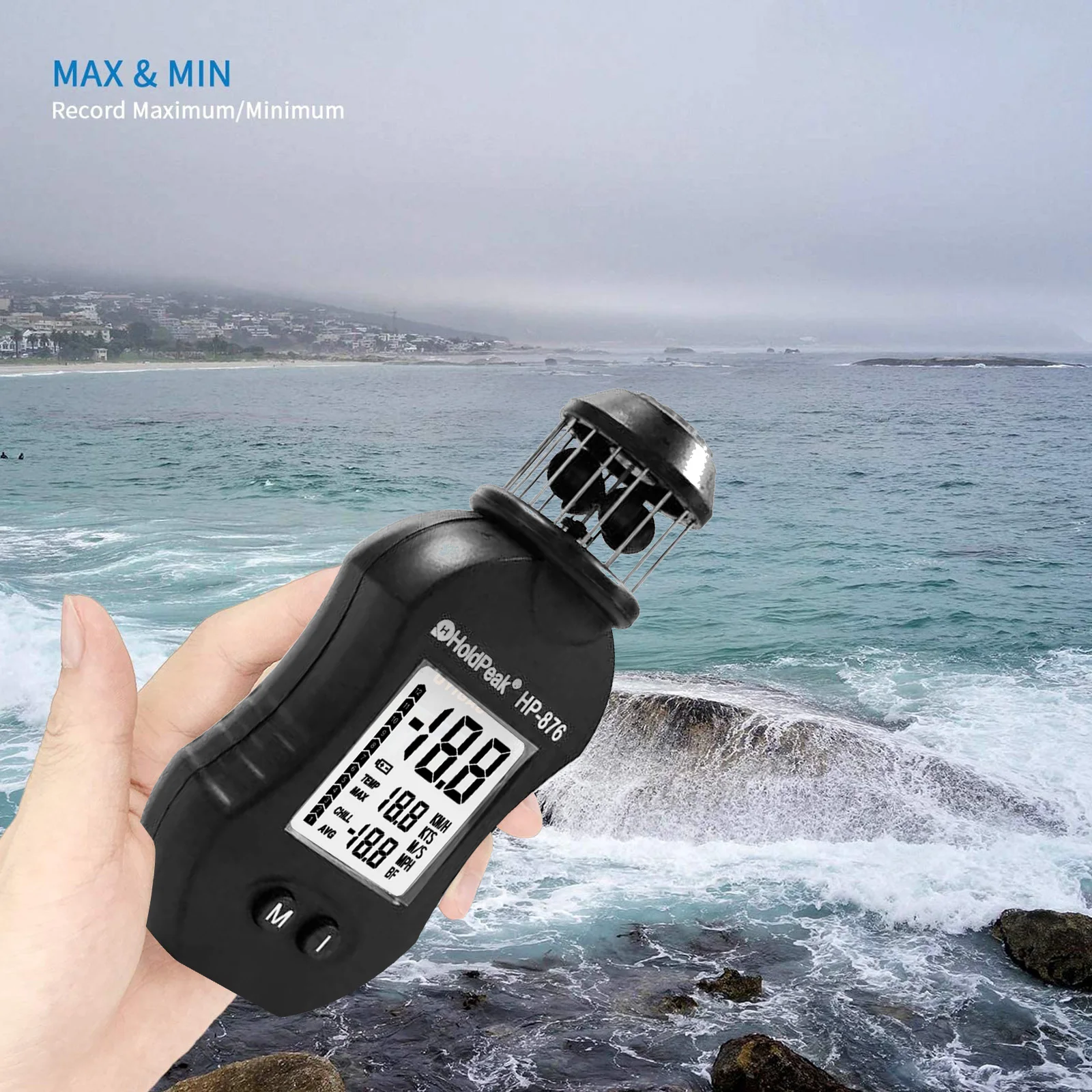Портативный анемометр Holdpeak HP-876, цифровой измеритель скорости воздуха, объема воздуха, для вентиляционных отверстий, лодок, Парусников, стрельбы