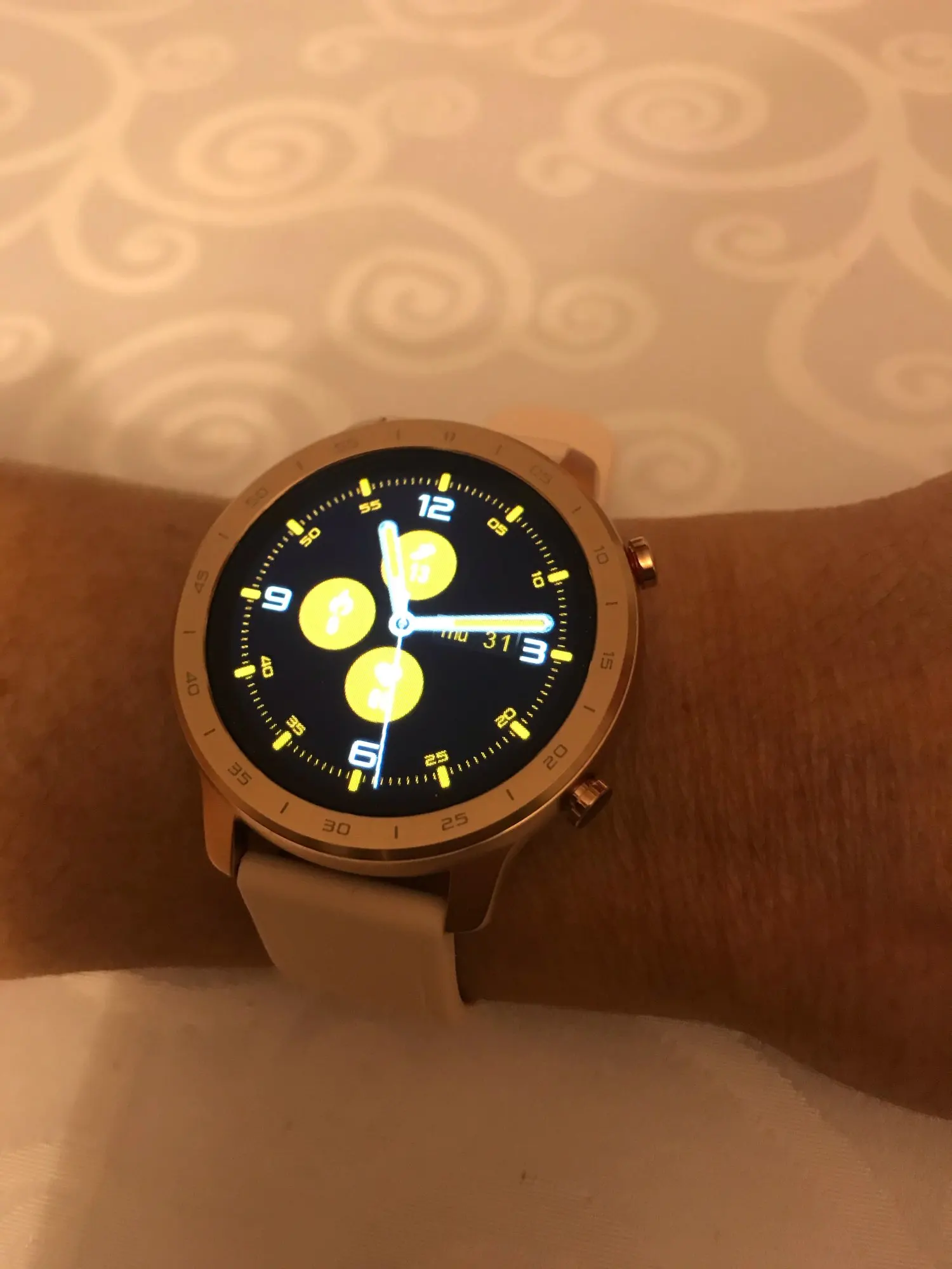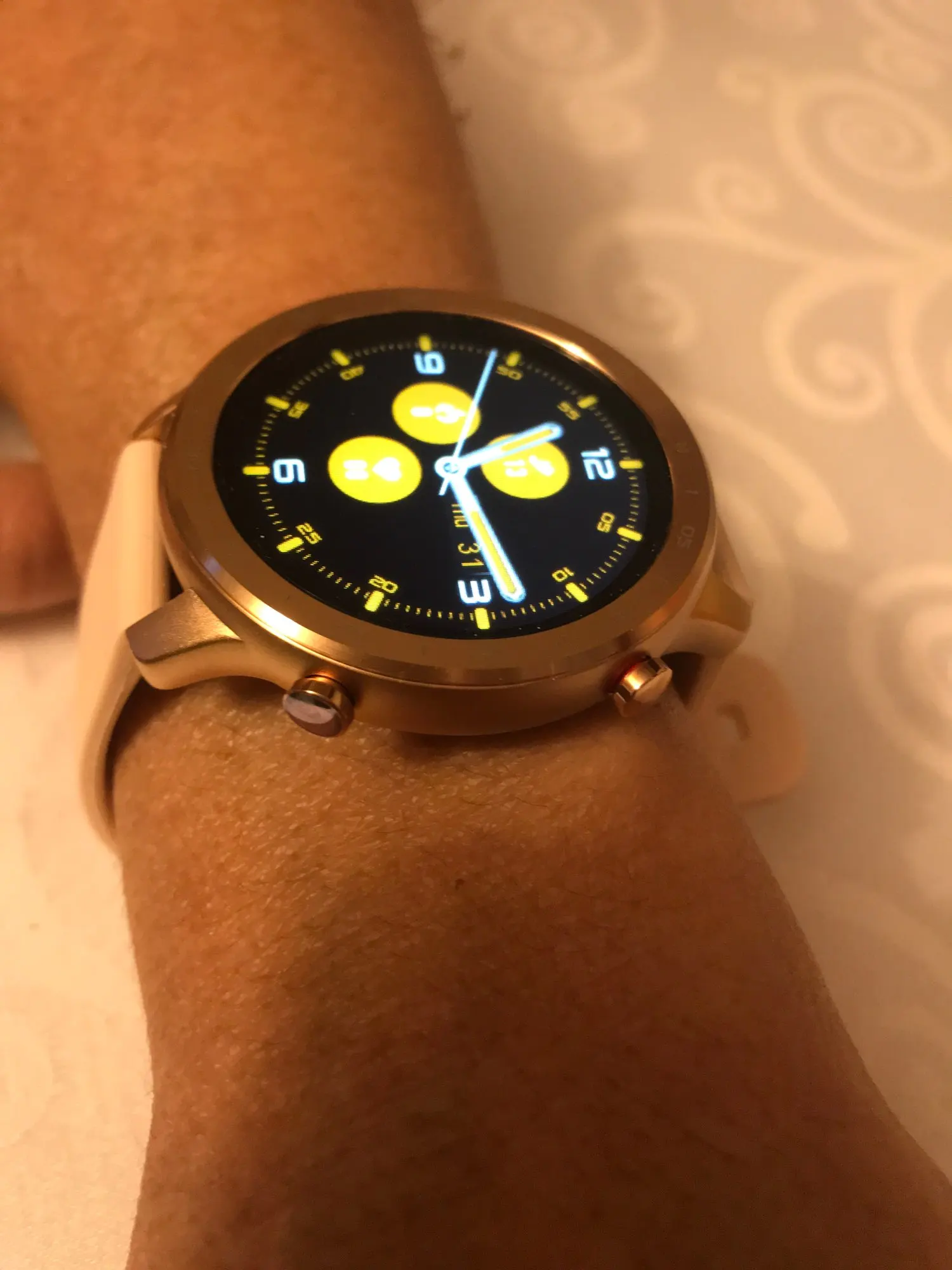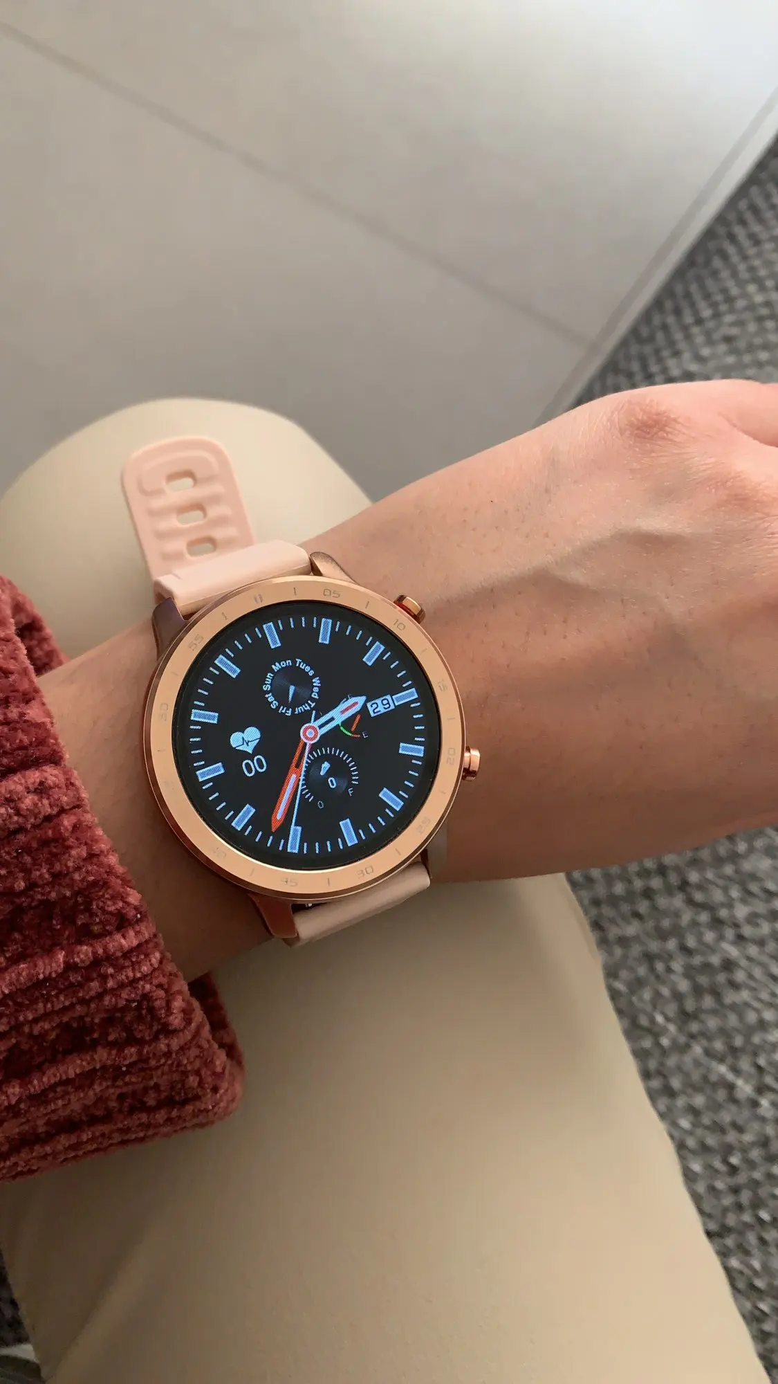 Очень доволен покупкой, часы действительно красивые, и его эстетика легко проходит через яблоко. Очень визуальный и удобный сенсорный экран со всеми видимыми данными. Очень хорошая автономность (он заряжает систему с зажимом, который мне не нравится). Он очень хорошо контролирует владельца автоматически на всех этапах, измеряет кровяное давление, он пропускает кислород в крови и контролирует овуляцию и правило у женщин. Очень полное применение и множество циферблатов. Я рекомендую его на 100%