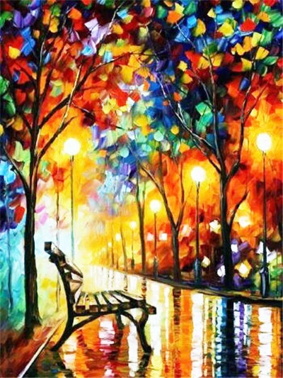 Алмазная живопись полная квадратнаякруглая дрель дождливая ночь скамейка 5D алмазная живопись вышивка крестиком Мозаика Кристалл Z1807