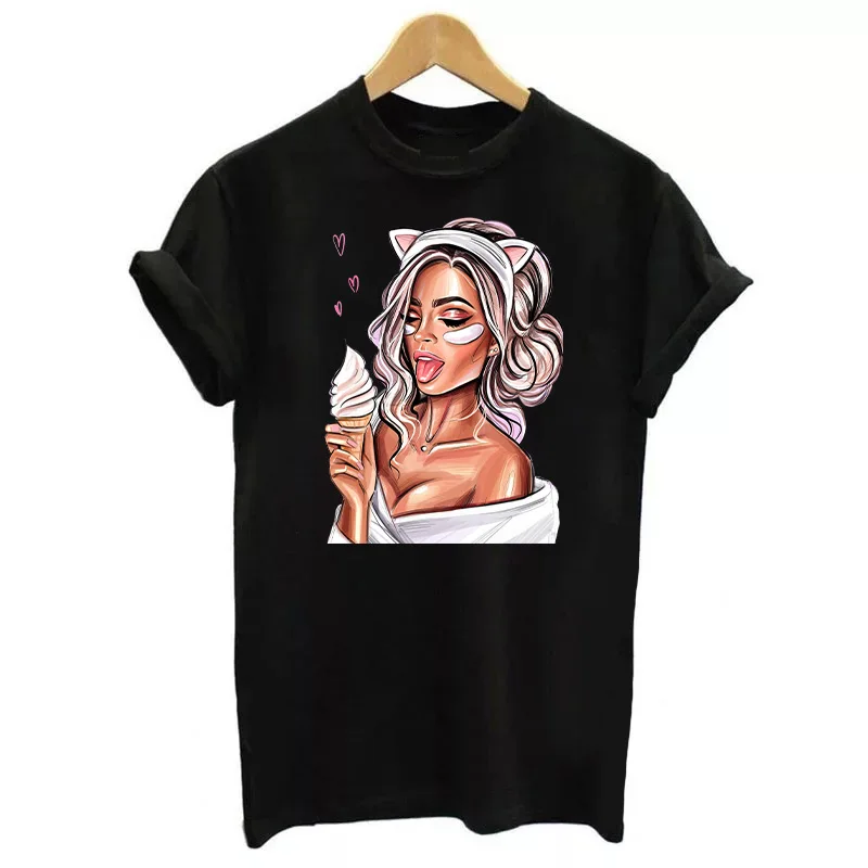 Милая Черная Термотрансферная наклейка для девочек, футболка с прин...