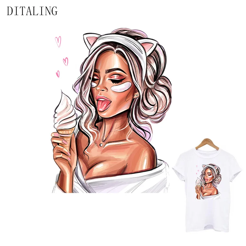 Сексуальные черные женские термотрансферные наклейки сделай сам, A-...
