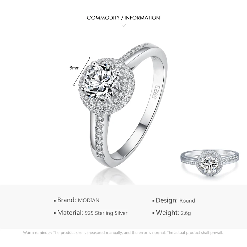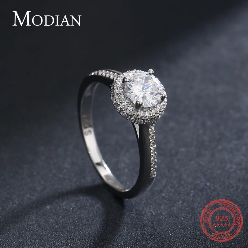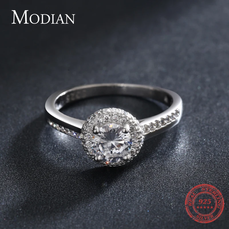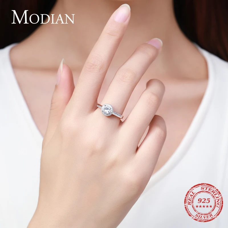 Modian классическое обручальное кольцо 100% Стерлинговое Серебро 925 пробы с прозрачным кубическим цирконием кольца для женщин обручальное массивное ювелирное изделие