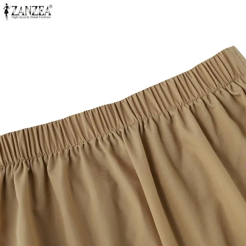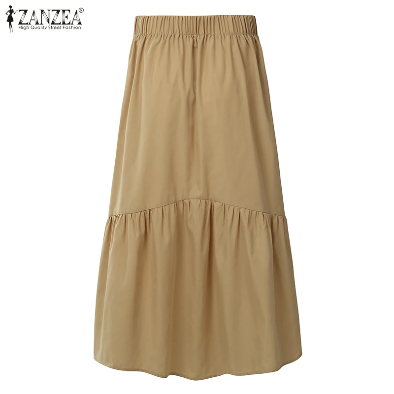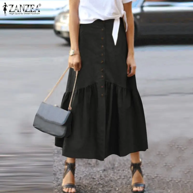 Юбка ZANZEA Женская однобортная с оборками, повседневная однотонная длинная юбка с эластичным поясом, для отдыха, на лето