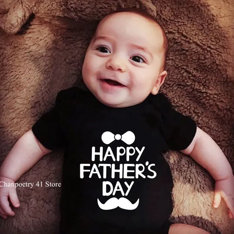 Счастливый День отца с текстовым принтом для новорожденных детей, для маленьких мальчиков и девочек для малышей с короткими рукавами, комбинезон, костюм, одежда комплекты подарок отца, матери, дочери и сына