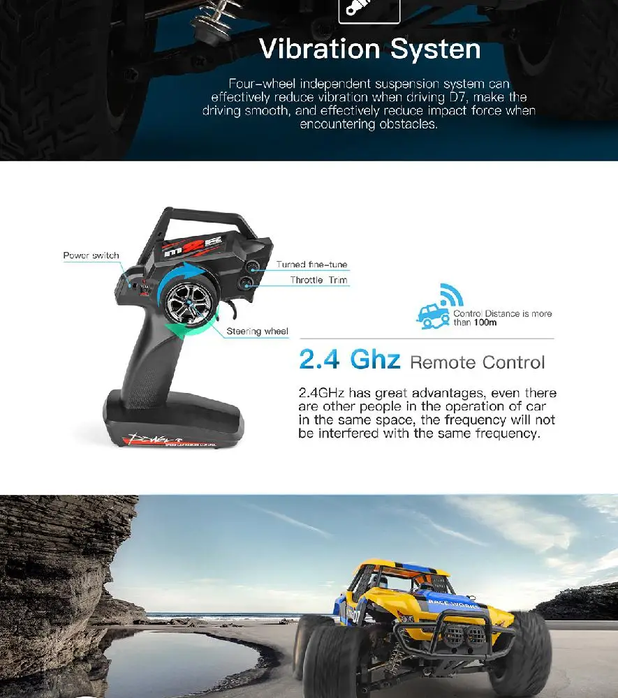 Четырехколесная независимая подвеска, высокопроизводительная подвеска. Бегущий супер стабильно на дороге и на трассе, и побеждайте по всей местности. 550 мощный приводной двигатель более мощный, а скорость может достигать 45 км/ч, что быстрее, чем у того же типа автомобилей. Высокопроизводительные шины из натурального каучука гарантируют лучшее сцепление автомобиля с дистанционным управлением на дорожной поверхности. Чехол для автомобиля с цветной печатью от столкновений, красивый и стойкий к ударам. Герметичная коробка передач и электронная плата с водонепроницаемой и пыленепроницаемой функцией могут путешествовать как обычно даже по пыльной или водянистой дороге. Высокоскоростные шарикоподшипники и стальные приводные валы значительно увеличивают срок службы автомобилей с дистанционным управлением. Пульт дистанционного управления красивый и просторный по внешнему виду; Пульт дистанционного управления имеет функции прямого ускорения, торможения, замедления обратного хода, а также регулировки рулевого управления и дроссельной заслонки. При возникновении любых проблем, пожалуйста, немедленно свяжитесь с нашим магазином. Честь служить вам!