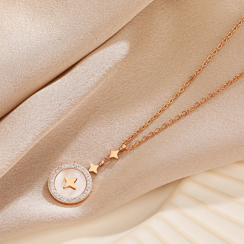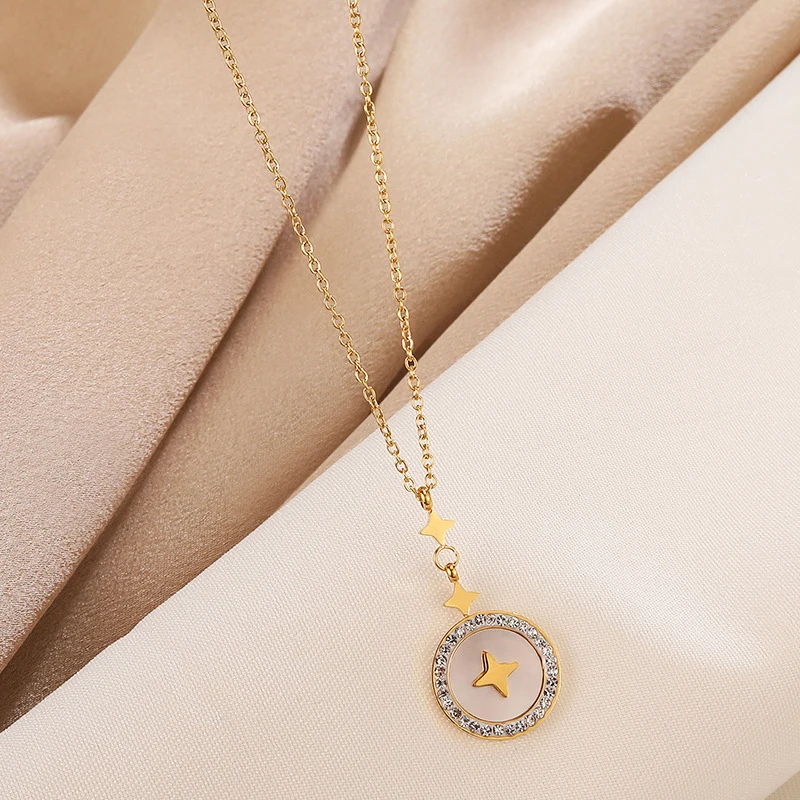 Ожерелье из титановой стали с круглой звездой для женщин, топовое дизайнерское ювелирное изделие, цепочки с кулоном с инкрустацией из циркония AAA, подарок для девушки