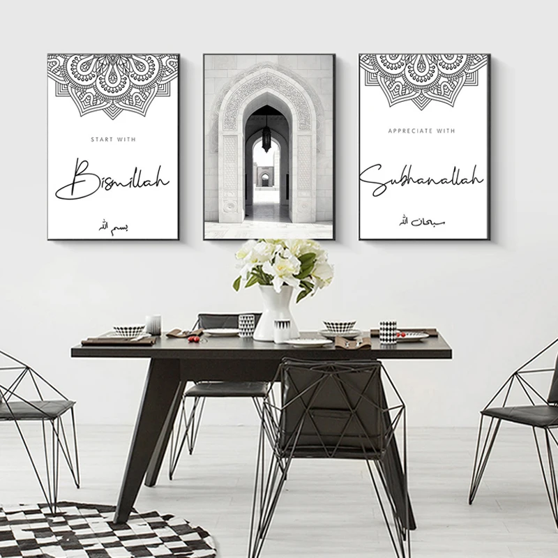 Мусульманский плакат с цитатами Bismillah, черно-белый Принт, насте...
