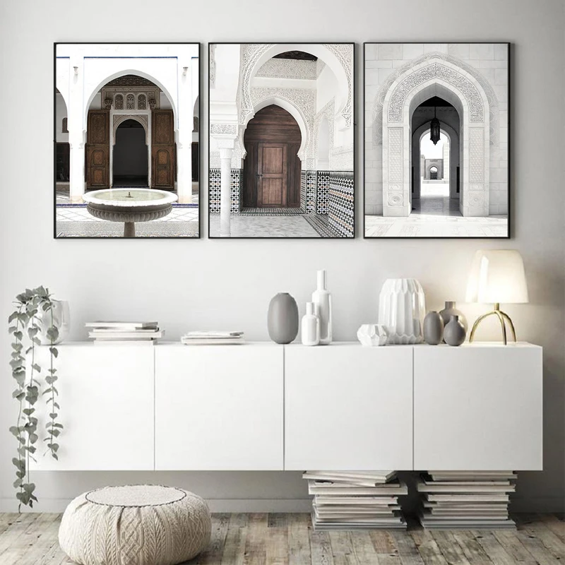 Винтажный постер исламских ворот, мечеть, архитектура, дверь, холст...