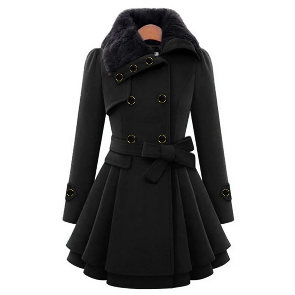 Женская элегантная ветровка, теплая верхняя одежда на пуговицах, асимметричный подол, плащ, пальто с поясом, Женская куртка # T2G