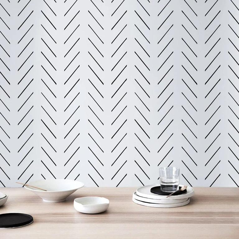 Современная тонкая настенная бумага в елочку черного и белого цвета...