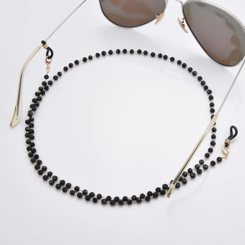 Цепочка-шнурок для очков, бусинка из черного кристалла, ручная работа