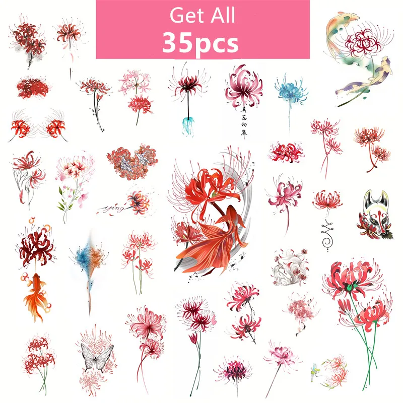 Тату-наклейки с цветами Higan 35 шт., водостойкие женские, долговечные, сексуальные, красные, имитация ключиц, на грудь, временные татуировки
