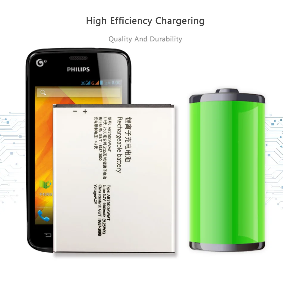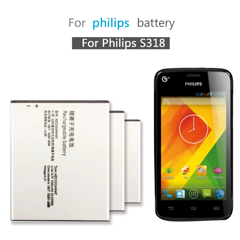 Оригинальная батарея AB2500AWMT для сотового телефона Philips S318 CTS318 AB2500AWMT для XENIUM Smart Mobile 2500 мАч