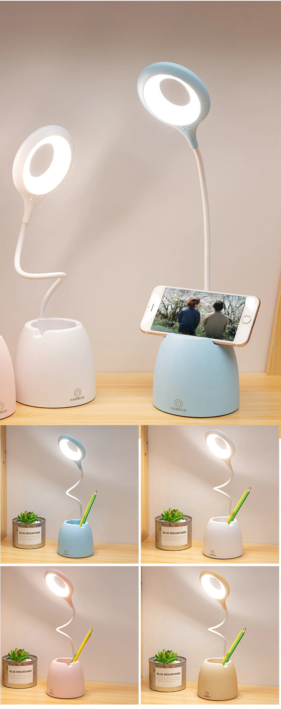 Спецификация: Название изделия: настольные лампы Напряжение: 5 В постоянного тока Питание от USB Материал: ПП/пластик Цвет изделия: белый/розовый/синий Источник света: светодиодный светильник Переключатель: сенсорный переключатель С регулируемой яркостью: Да Посылка включает в себя: 1 x светодиодный Настольный светильник 1 х USB кабель