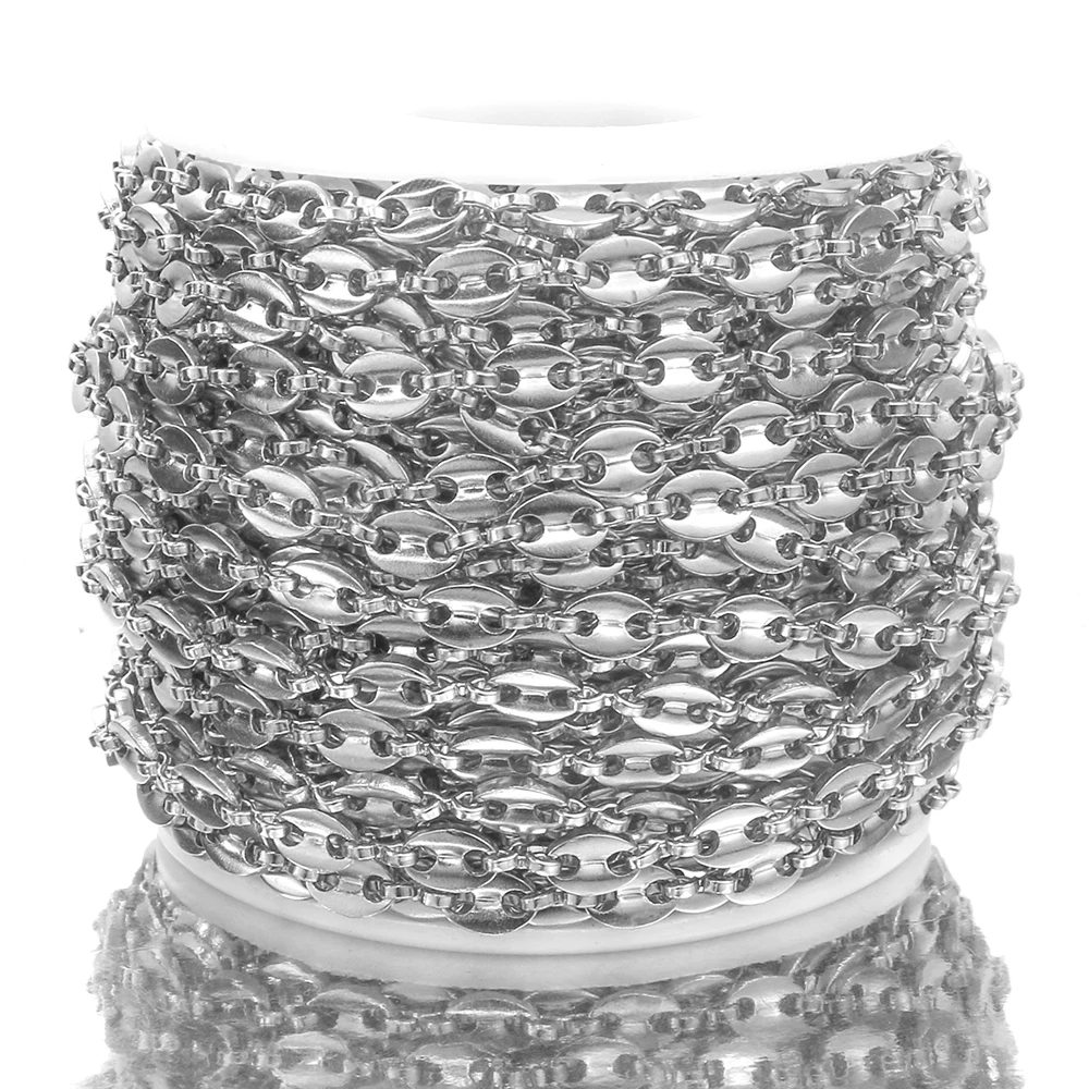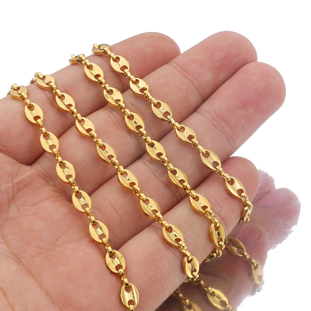 Цепочка для мужчин и женщин, звеньевая цепь из нержавеющей стали под золото, 1 метр, изготовление браслета ожерелья, кофейные зерна, фурнитура