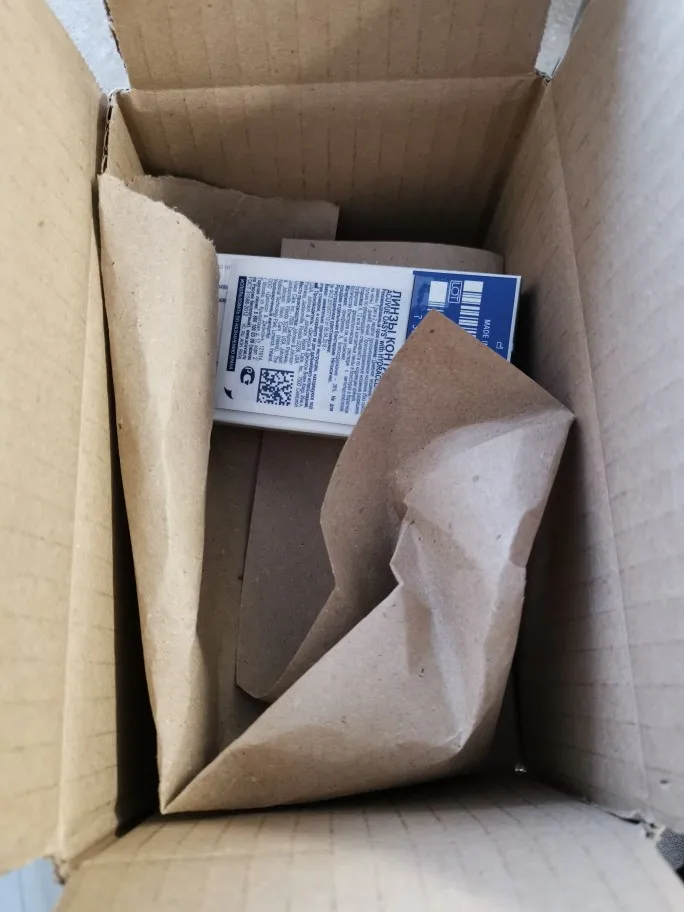 лінзи надійшли до Астрахані за 4 дні!, упакованы в коробку с куском паролона, чтобы фирменная упаковка с линзами не болталась при перемещении, смешно, но эффективно, как говорится дёшево и сердито, получил в постамте в магазине Пятёрочка, упаковка без повреждений, ПРОДАВЦА И ТОВАР РЕКОМЕНДУЮ