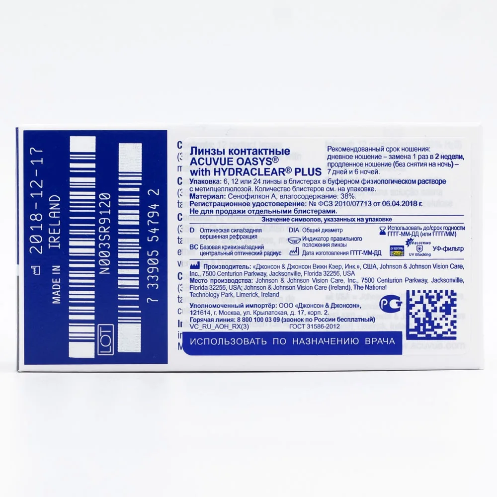 Оригинальные Контактные линзы Johnson Johnson Acuvue Oasys (12 шт) Двухнедельные