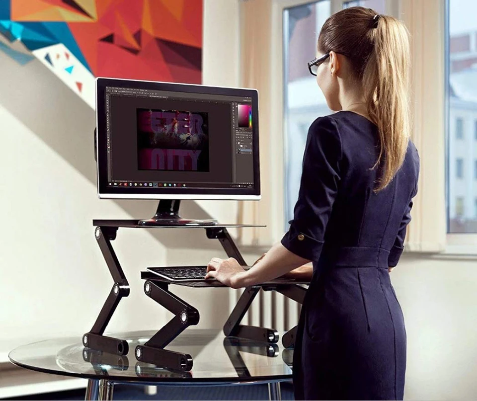 Регулируемый алюминиевый столик для ноутбука LapEasy, эргономичный портативный поднос, настольная подставка для ПК, с ковриком для мыши