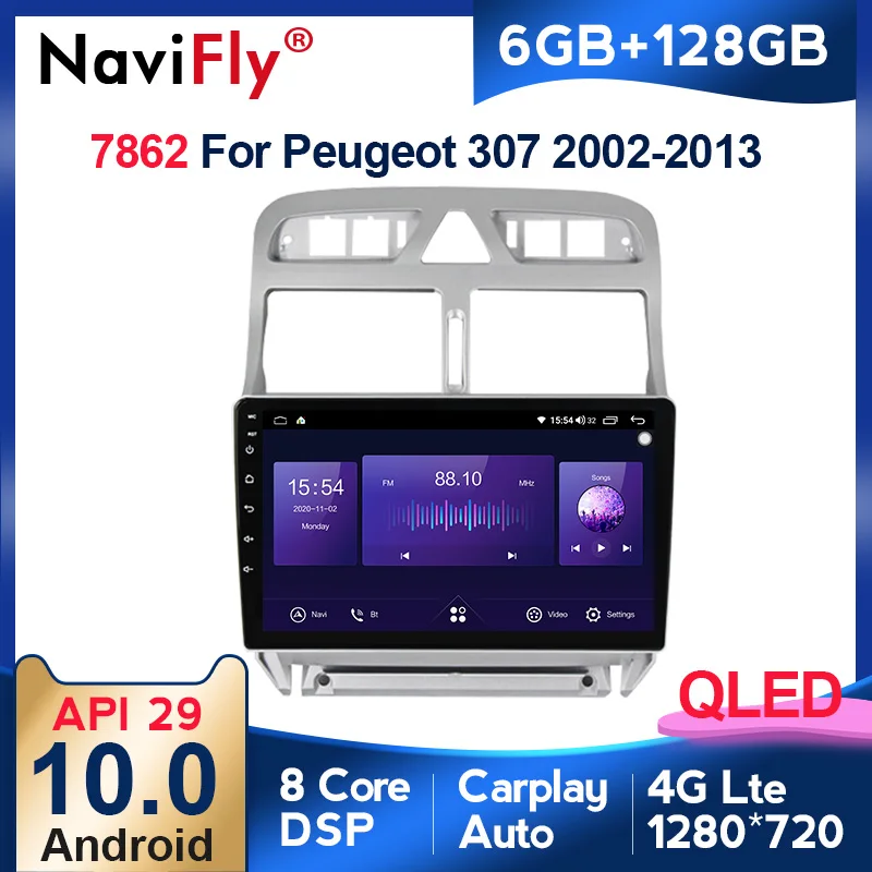6G + 128G Android 10 QLED 4G LTE для PEUGEOT 307 sw 307 2002 - 2013 автомобильный Радио Мультимедийный видео плеер навигация GPS 2 din dvd