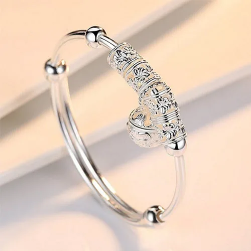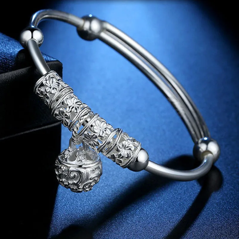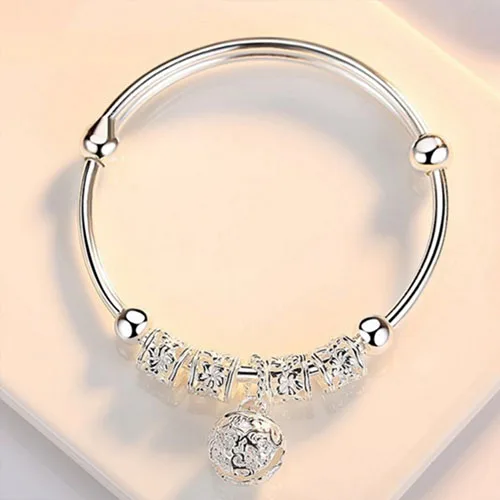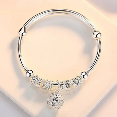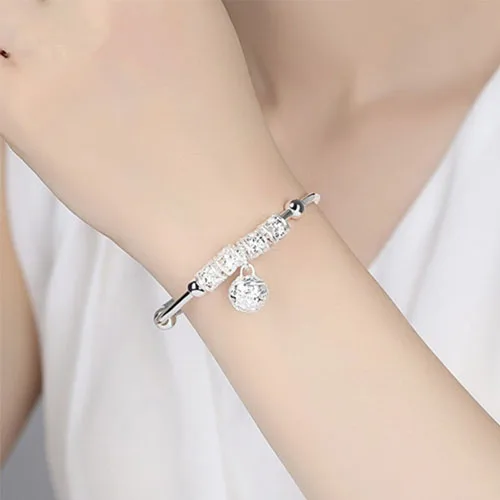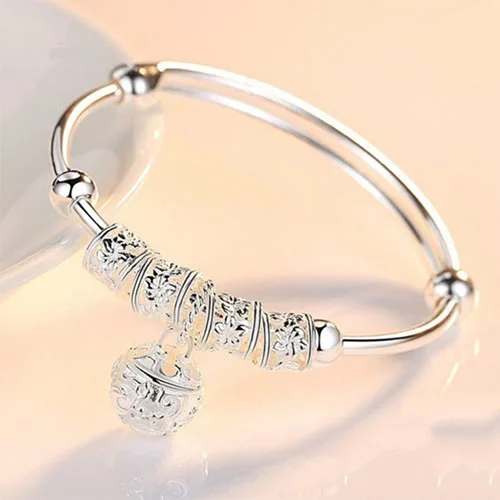 Браслет-манжета женский из серебра 925 пробы с маленьким колокольчиком