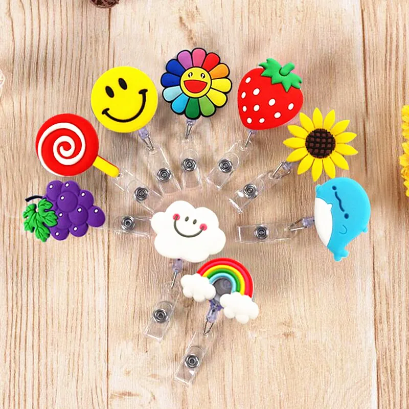 Выдвижной силиконовый значок медсестры, 1 шт., зажим для фруктов, дельфинов, подсолнухов, для учеников, ID держатель для карт