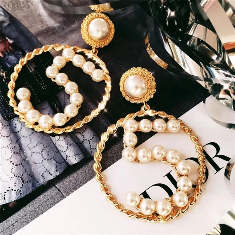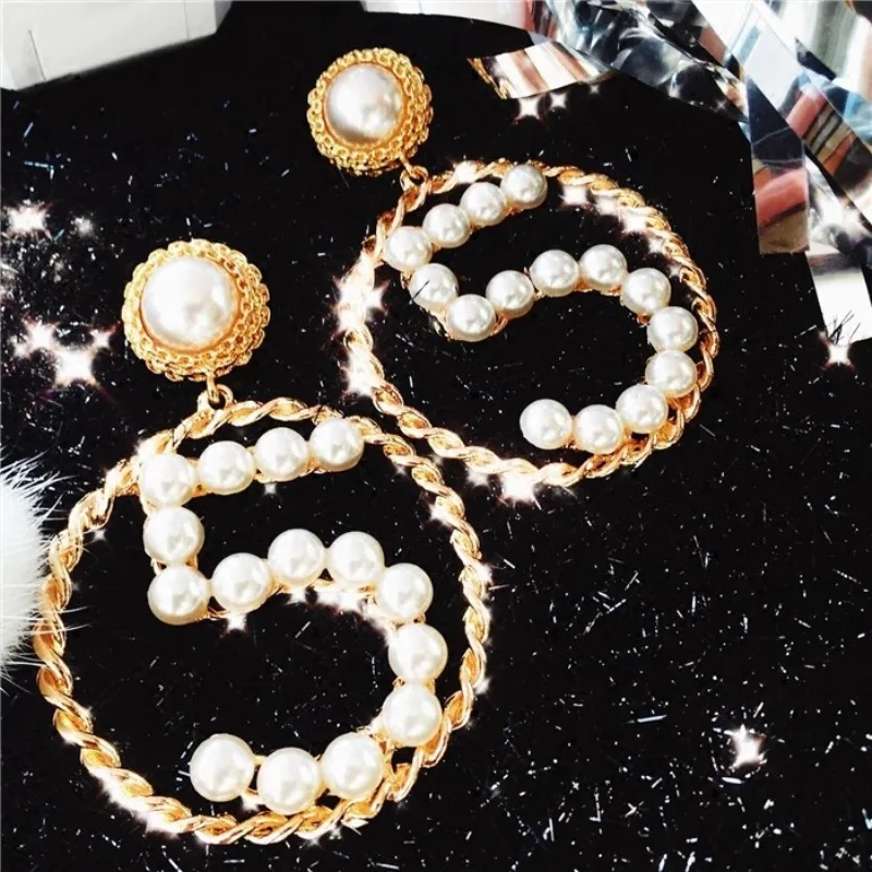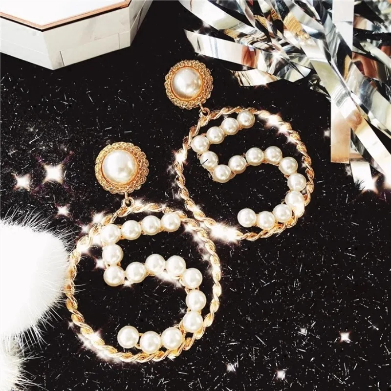 Длинные большие серьги Exknl для женщин, массивные серьги-подвески с жемчугом в стиле барокко 5, свадебные ювелирные изделия, женские серьги 2021