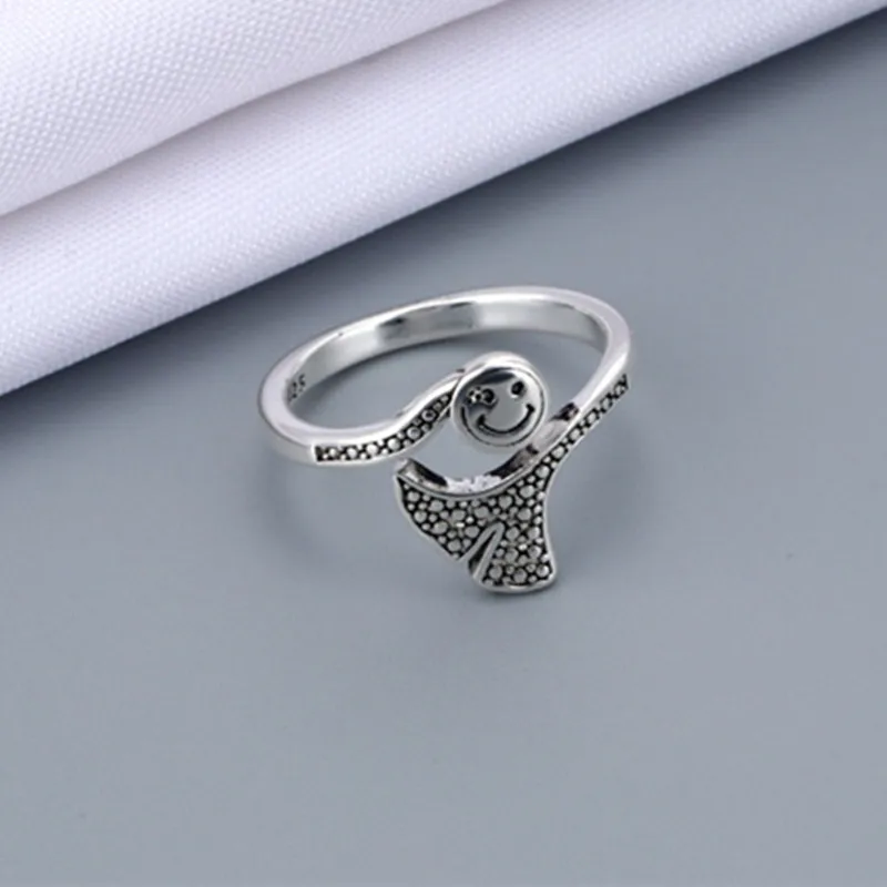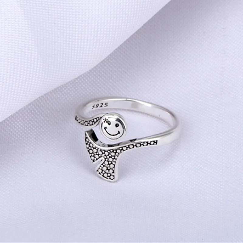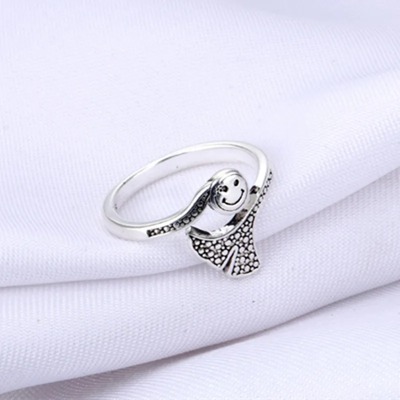 Винтажный античный серебряный цвет Счастливое Улыбающееся Лицо Открытое кольцо для женщин панк регулируемое кольцо с хвостом Кита модное ювелирное изделие лучший подарок