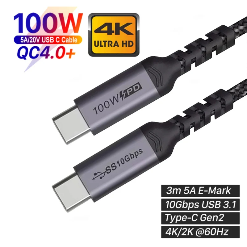 GEN2 Multifuntional -- 100 Вт USB 3.1 Тип C PD кабель Быстрый просмотр 1. Поддержка 20 в/5А, 100 Вт высокой мощности быстрой зарядки, поддержка PD QC4.0/3,0/2,0, полный заряд мобильных телефонов, таких как samsung xiaomi huawei и т. Д., и планшетных ноутбуков быстро 2. Встроенный электронный маркер, 4K @ 60HZ проекционный экран, 3840*2160P различимость. А. Ноутбуки, переданные на проектор, большая sreen конференции, выступления и презентации ясны, и работа более эффективна. B. Игра с большим экраном, приносит вам непревзойденную версию праздника, мобильные телефоны, подключенные к телевизору, высокая скорость обеспечивает стабильность сигнала, отсутствие падения кадра, отсутствие задержки. C. Совместимость с usb-хаб, поддержка usb c hub switch для большего количества устройств. 3. 10 Гбит/с stardard usb 3,1 скорость синхронизации, быстрая передача данных, делает загрузку 1G больших фильмов занимает всего 1 секунду. Подключение к съемным большим файлам жесткого диска также может быть отправлено быстро. 4. Зарядка + Синхронизация данных + передача видео 3 в 1. Поддержка зарядки и синхронизации данных в то же время, многофункциональный кабель, купить один для всех с использованием сцены.