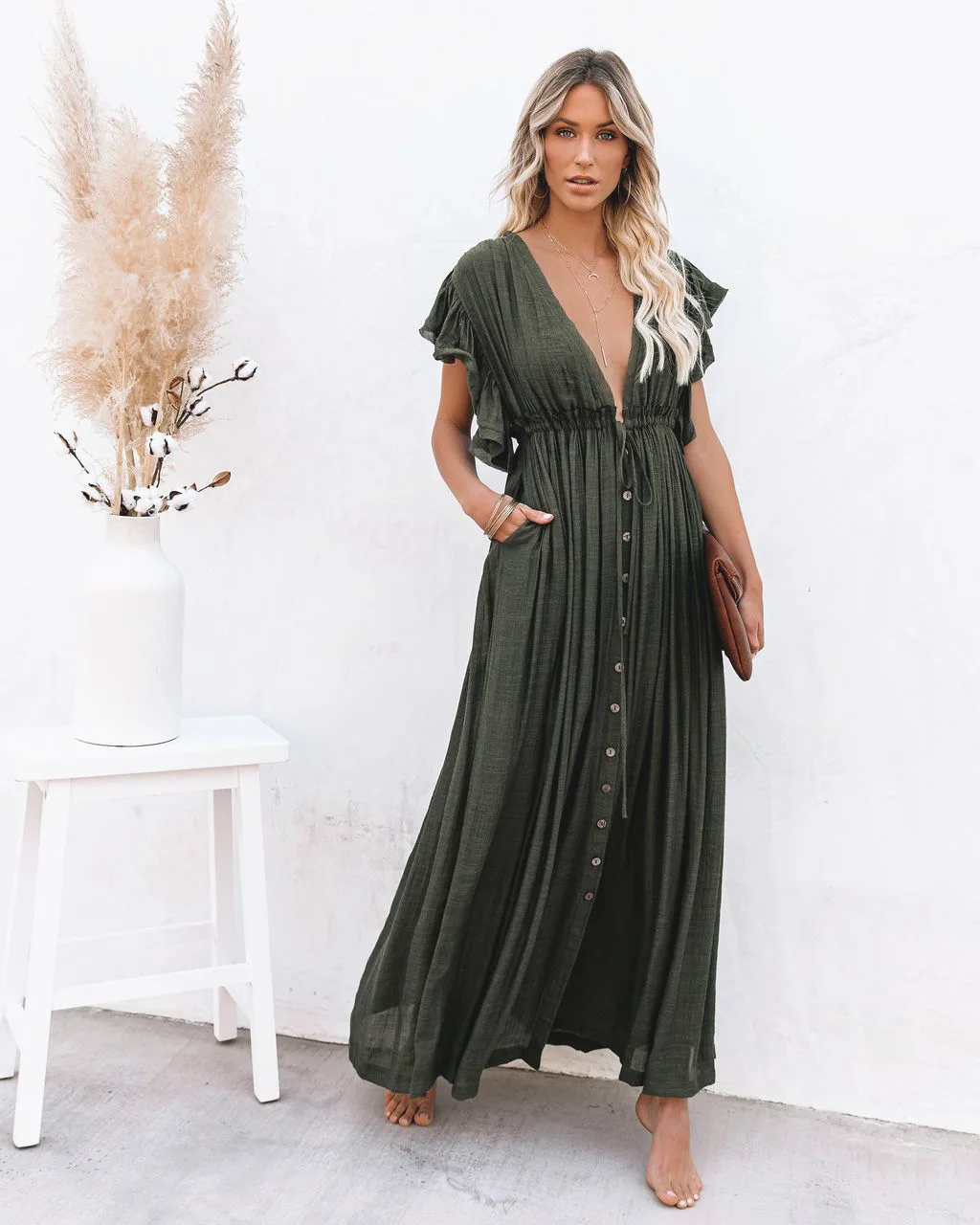 Женское Хлопковое платье-макси TEELYNN, с глубоким V-образным вырезом, с открытой спиной, в стиле бохо, летнее, повседневное, Пляжное, бикини, 2020