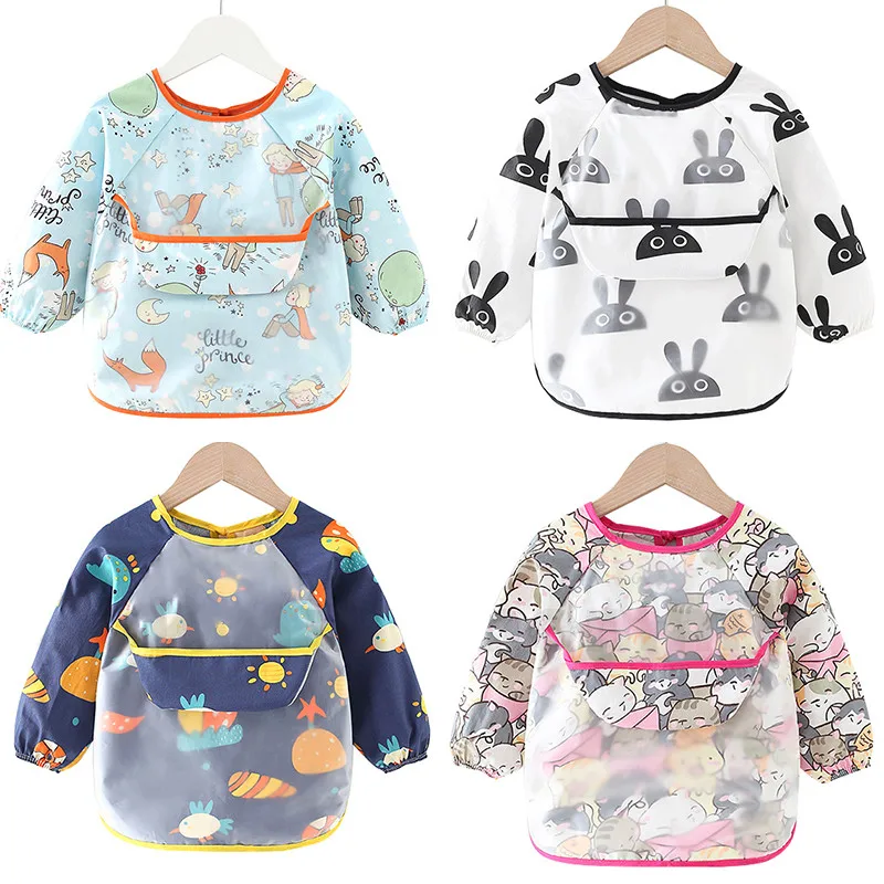Детский нагрудник, водонепроницаемая рубашка с длинным рукавом, нагрудник-Бандана с рисунком, нагрудники с карманами, непромокаемые детские нагрудники