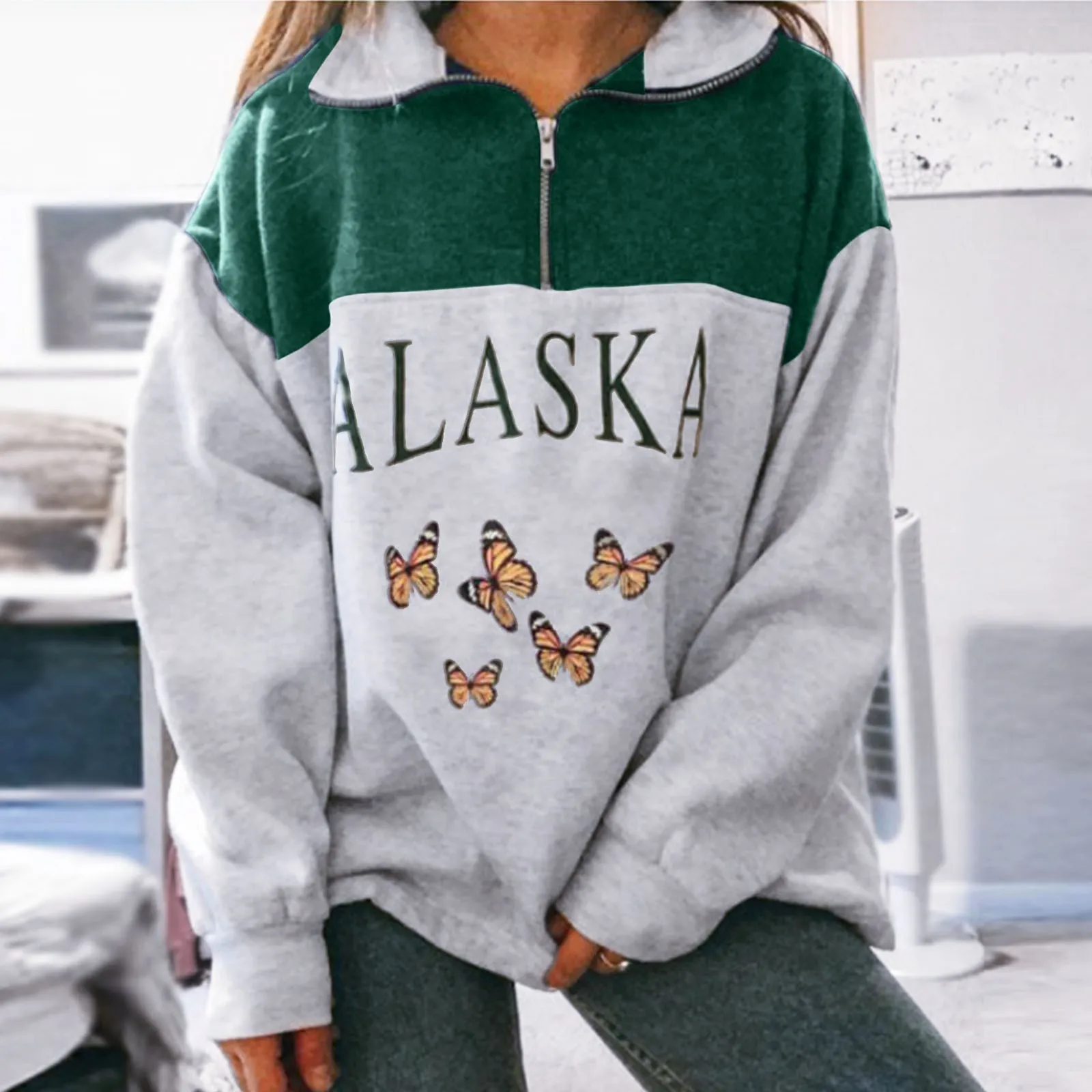 Женские свитшоты на молнии, винтажные толстовки с буквенным принтом...