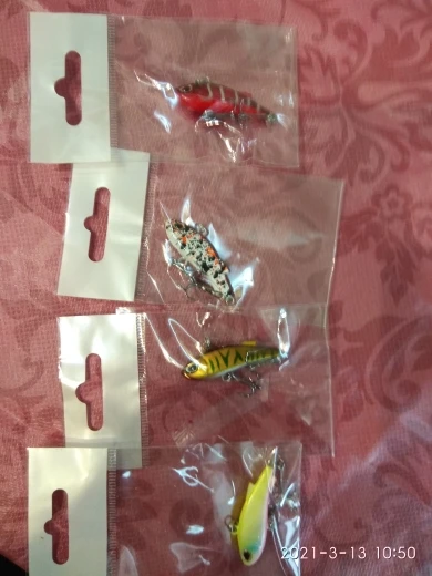 Товар пришёл в рекордные 15 дней,но минус всё таки есть,заводные кольца большего желаемого диаметра,крючки не особо острые и на одном из тройников не было половина крючка.Раскраска товара не плохая!!! В воде не были