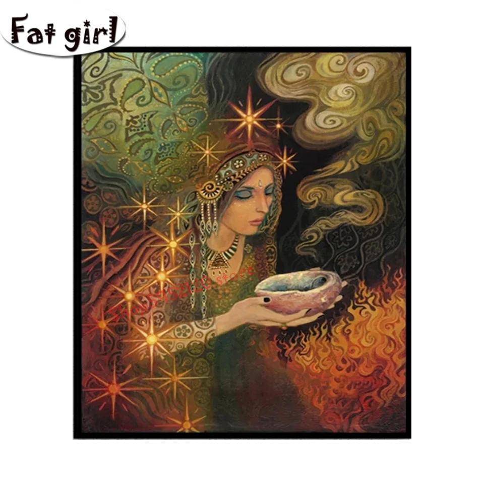 Алмазная 3D картина в богемном стиле, цыганская ведьма, богиня, полностью квадратная, круглая вышивка сделай сам, психоделическая мозаика, настенное искусство, Декор