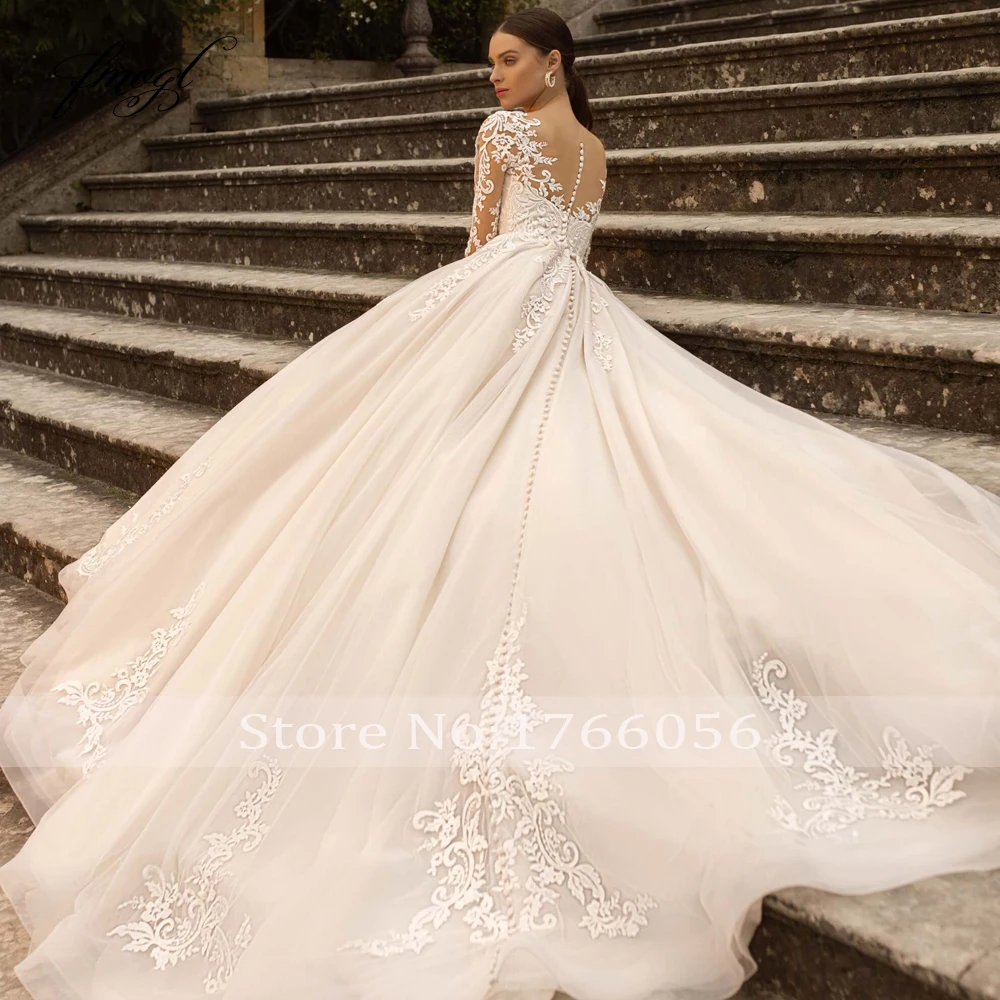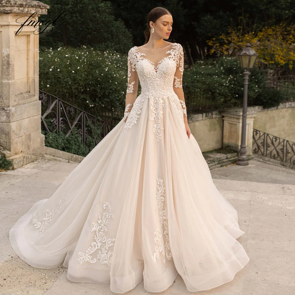 Fmogl свадебное платье с длинным рукавом Кружевное винтажное свадебное платье 2022 сексуальные иллюзионные аппликации из бисера со шлейфом ТРАПЕЦИЕВИДНОЕ платье для невесты