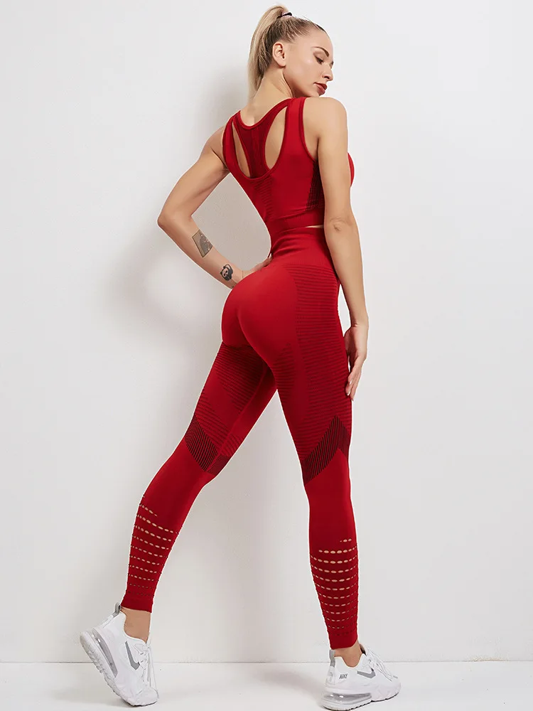 Спортивный костюм для йоги бесшовный Женский, тренировочная одежда, гимнастический костюм, леггинсы с высокой талией, спортивный бюстгальтер, кроп-топ, 2 шт.