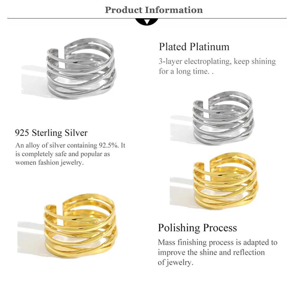 Кольцо женское из серебра 925 пробы, многослойное, регулируемое