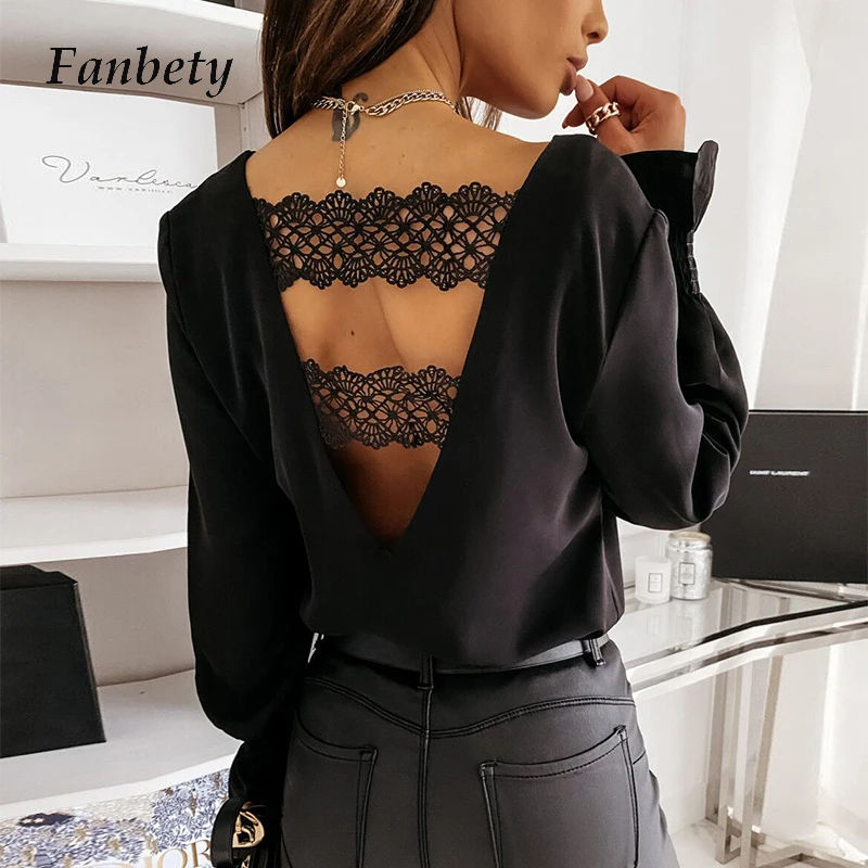 Женская кружевная блузка с вышивкой и V-образным вырезом, демисезонная офисная однотонная блузка с рукавами-лепестками, элегантная рубашка, блуза