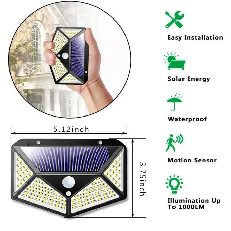 100 светодиодный светильник на солнечной батарее, уличный светильник на солнечной батарее с датчиком движения, светодиодный светильник на солнечной батарее, водонепроницаемый светильник на солнечной батарее для украшения сада