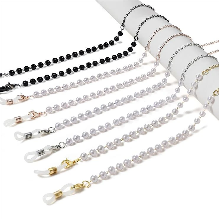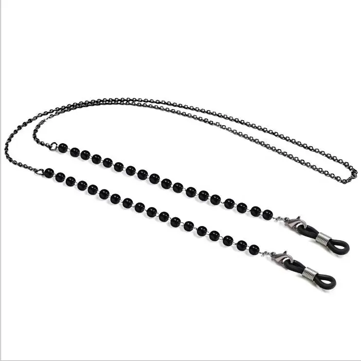 Ремешок для очков с черным жемчугом, подвесная цепочка для очков для чтения, модный держатель для солнцезащитных очков, шнур для очков, металлическая Нескользящая цепочка