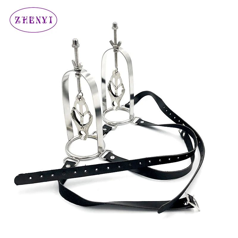 БДСМ-Сдержанность Фетиш Секс-игрушки кожаный бондаж женский из нержавеющей стали Регулируемые пытки игры зажимы металлический ниппель клипсы для груди
