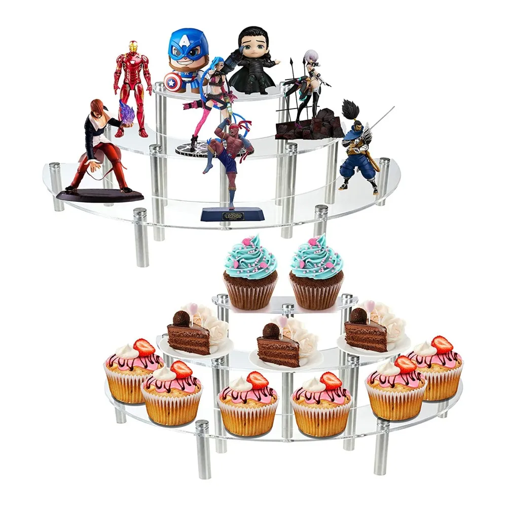 Трехуровневая полукруглая акриловая подставка для выставки, полукруглая подставка для выставки кексов, демонстрация фигурок кексов, коллекционная витрина