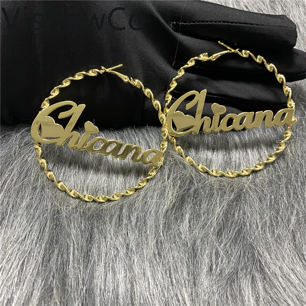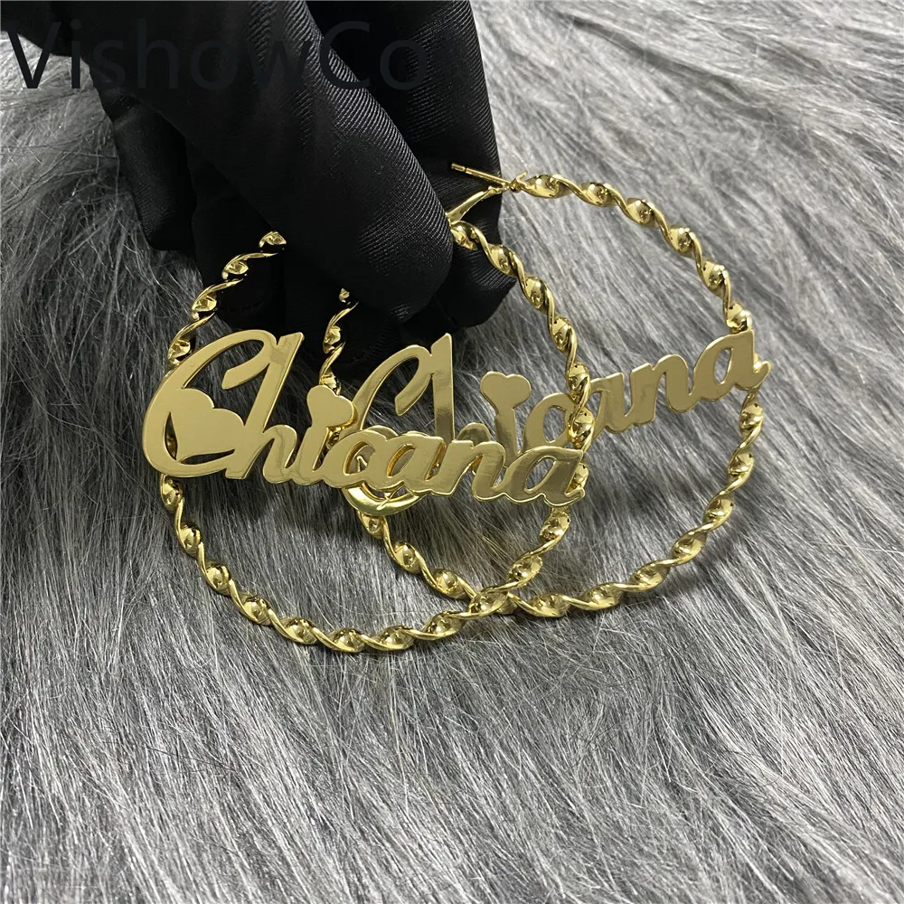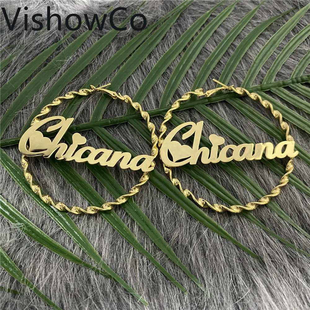 Висячие серьги с именем VishowCo, персонализированные круглые серьг...