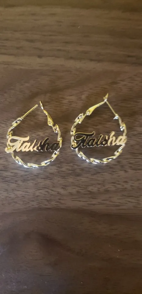Индивидуальные серьги-кольца с именем, позолоченные серьги 18 карат...