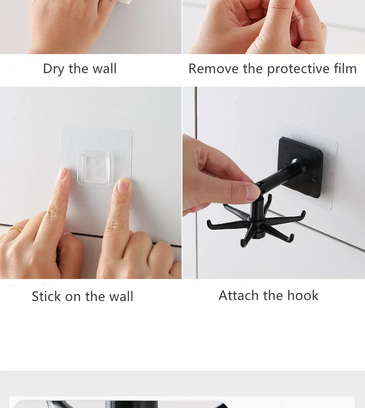 1 шт., самоклеящиеся крючки с поворотом на 360 градусов, 6 крючков