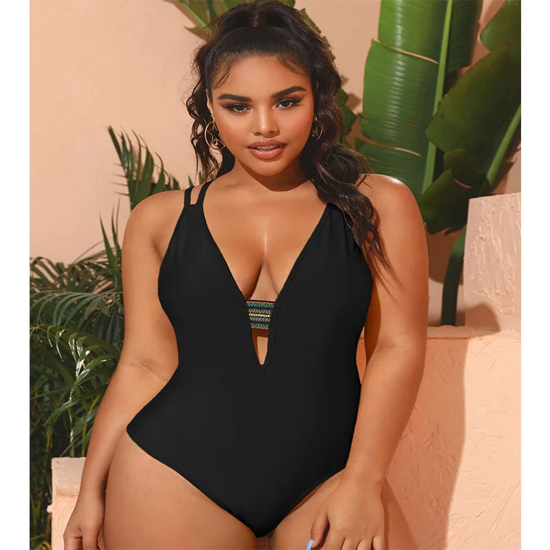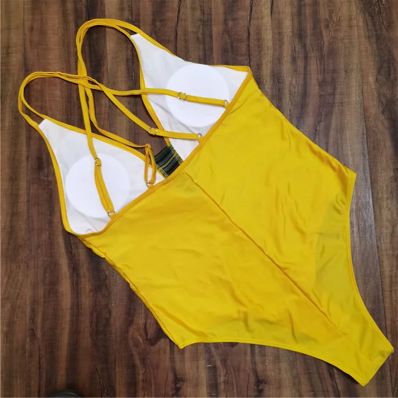 Купальник женский слитный с чашками пуш-ап и V-образным вырезом
