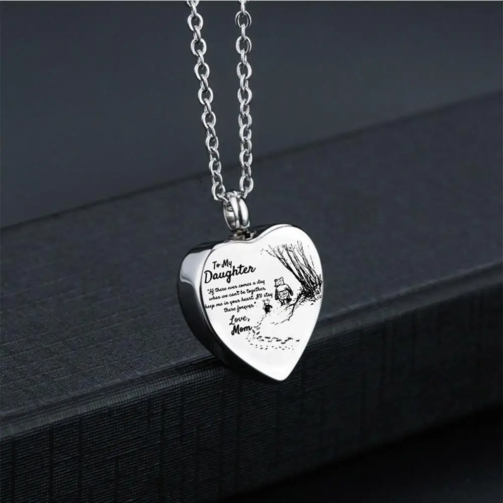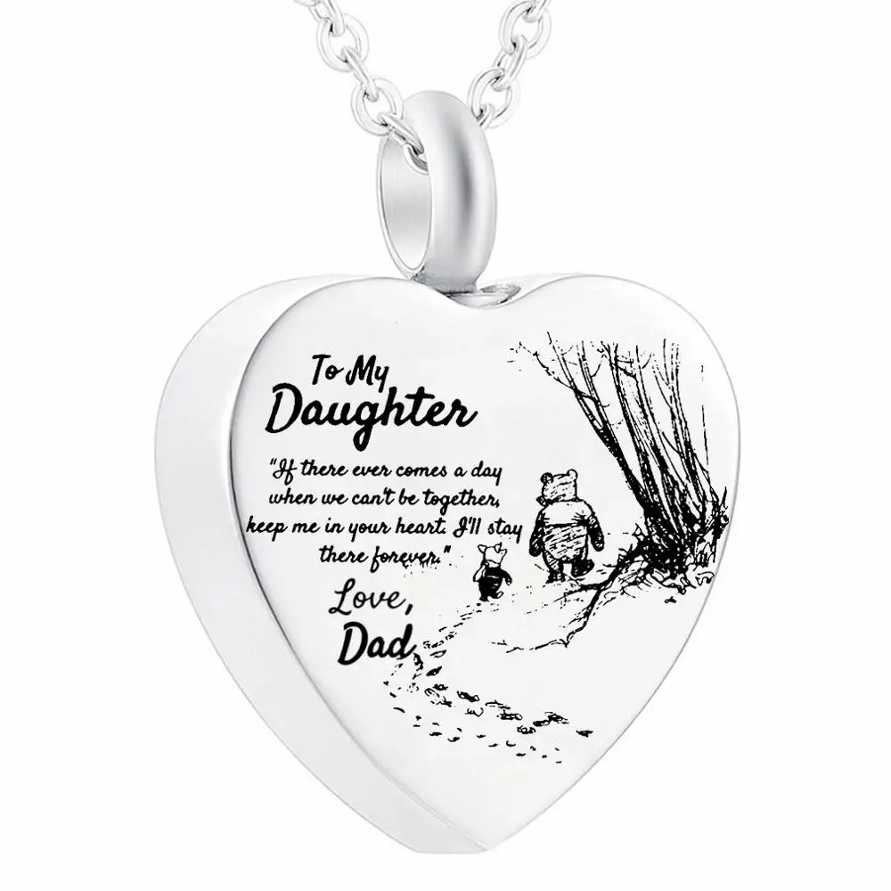 Дочке сердечко кремация урна ожерелье для праха урна ювелирных изделий, резные медальон Нержавеющаясталь памятный кулон из папа и мама